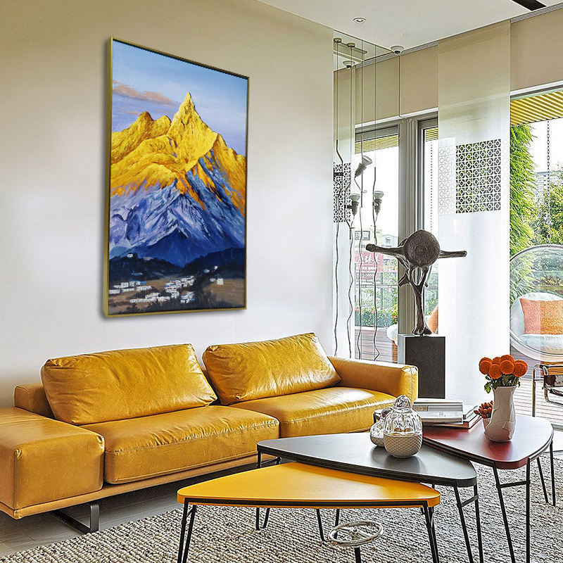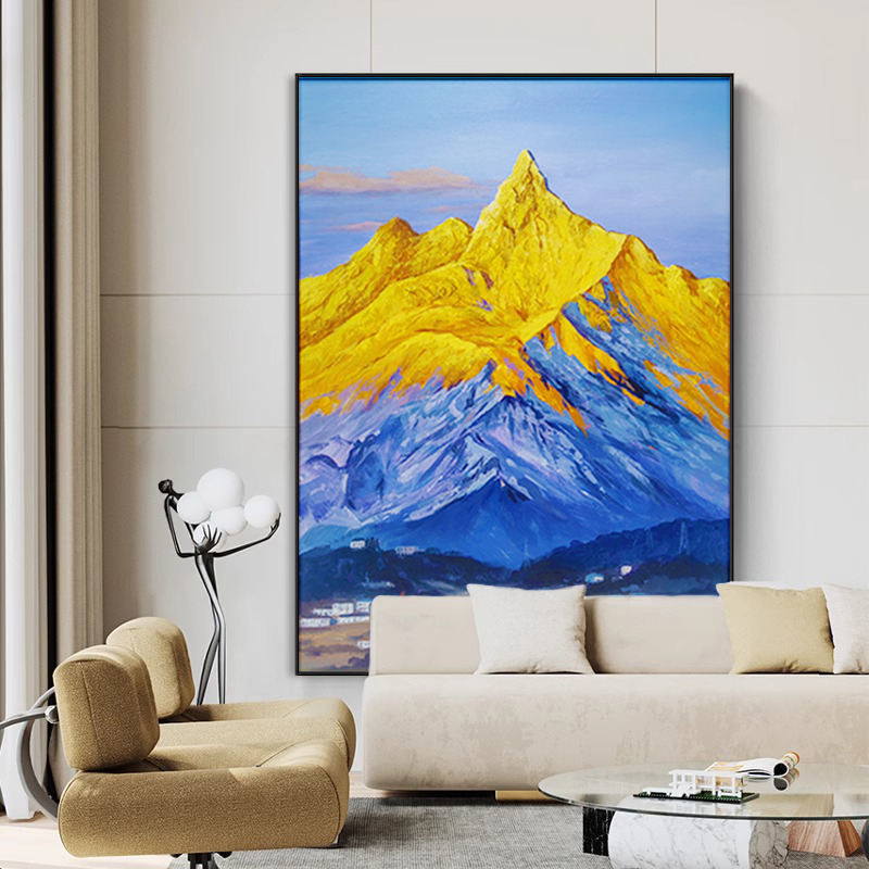 การวาดทาสีด้วยมือตามสั่ง ภูเขาทองแบบทันสมัย ผนวก เนื้อผงหนา ผ้าใบ 3d การวาดภาพสลักด้วยวิธีการพิมพ์ต่าง ๆ