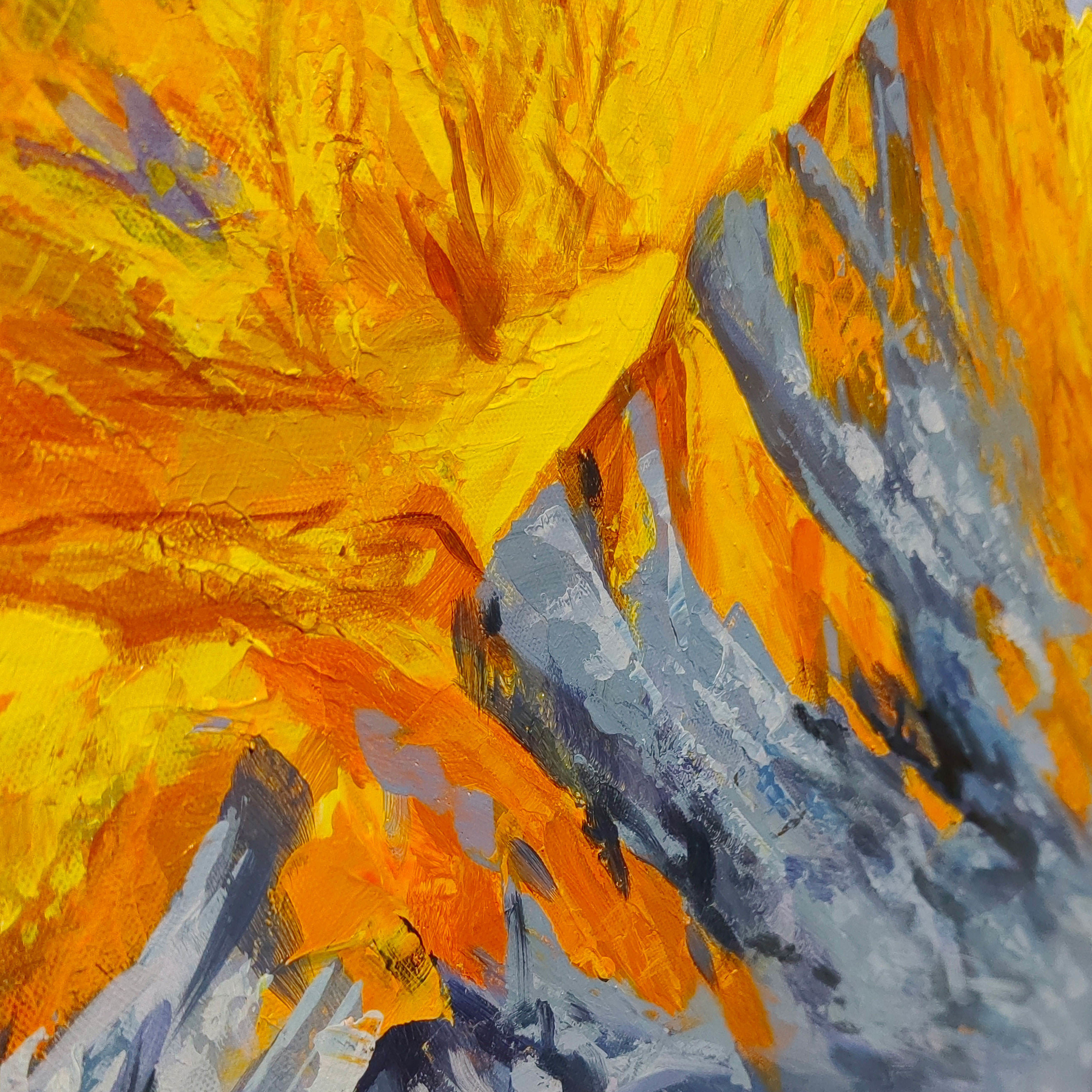 การวาดทาสีด้วยมือตามสั่ง ภูเขาทองแบบทันสมัย ผนวก เนื้อผงหนา ผ้าใบ 3d การวาดภาพสลักด้วยวิธีการพิมพ์ต่าง ๆ 8