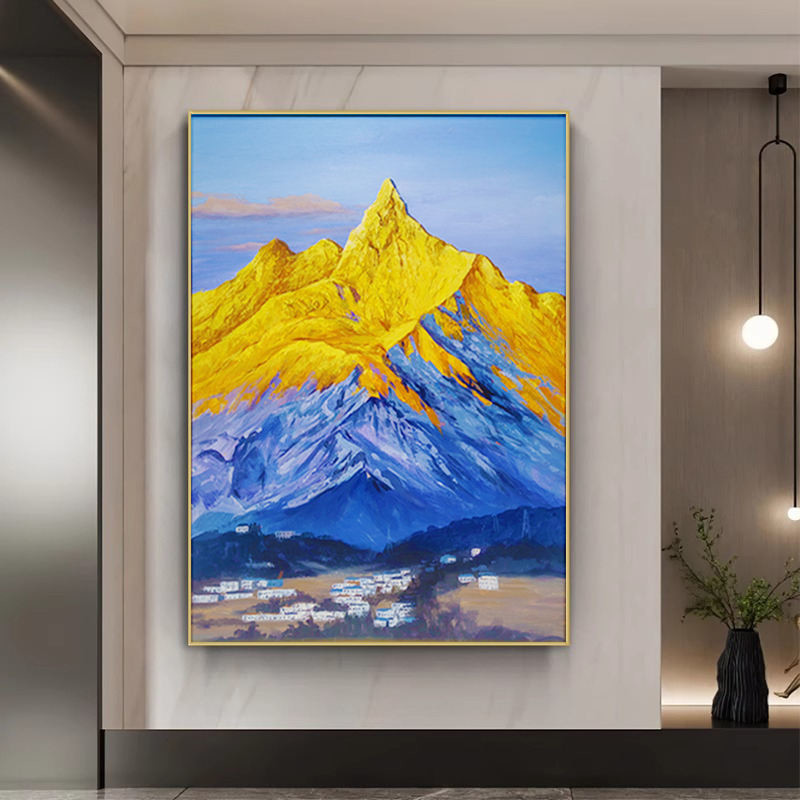 การวาดทาสีด้วยมือตามสั่ง ภูเขาทองแบบทันสมัย ผนวก เนื้อผงหนา ผ้าใบ 3d การวาดภาพสลักด้วยวิธีการพิมพ์ต่าง ๆ 0