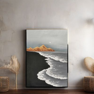 ภาพวาดฝาผนังที่วาดด้วยมือ โมเดิร์น อาร์ท 3d เนื้อเยื่อคลื่นทะเล ทราย หาด ภาพล้างอรรถภาพ ภาพวาดผ้าใบ วัสดุสําหรับตกแต่งห้องนั่งเล่น 2