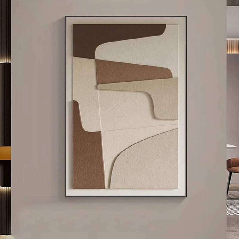 Mixed Media Painting, with its unique three-dimensional textures and highly modern artistic language, has become an ideal decorative choice for modern, Nordic, and light luxury interior design styles. The abstract structure, material contrasts, and simple composition of these works can easily blend into various spaces, enhancing the overall style and artistic atmosphere. Whether it's a minimalist Nordic space, a sophisticated light luxury style, or a modern home with a strong sense of design, these works can become the visual focal point, infusing the space with artistic taste and a unique style.